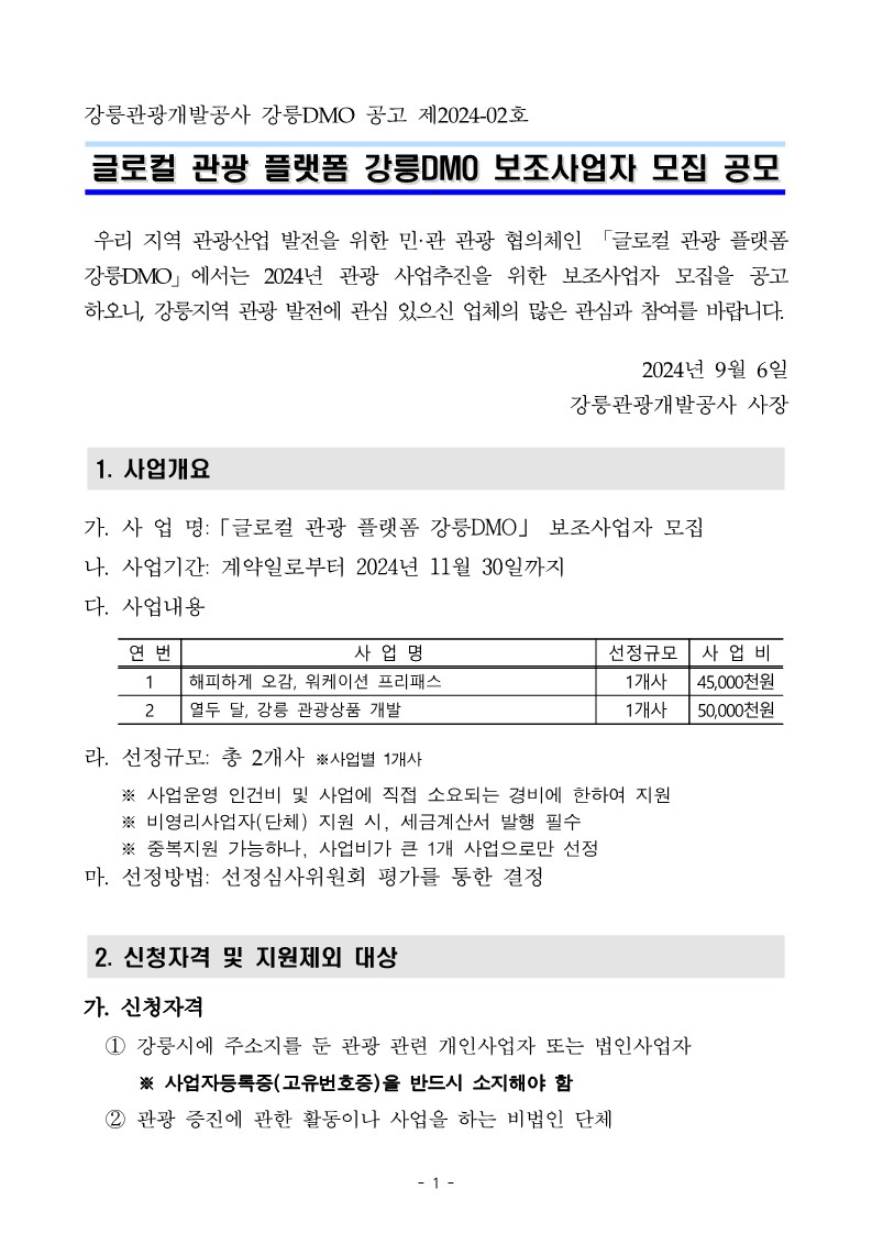 ★ 2024년 글로컬 관광 플랫폼 강릉DMO 보조사업자 모집 변경 공고문_2.jpg (145 KB)