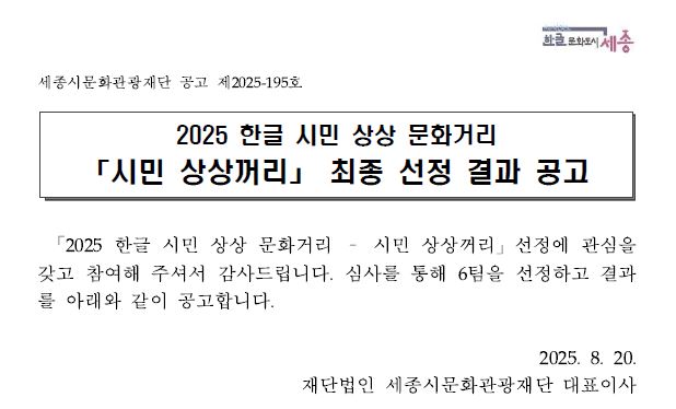 2025 시민 상상꺼리 최종 선정 결과 공고