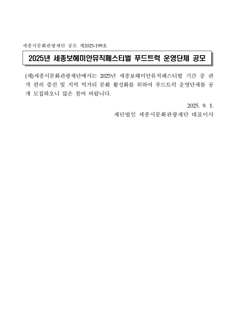 2025 세종보헤미안뮤직페스티벌 푸드트럭 운영단체 공모