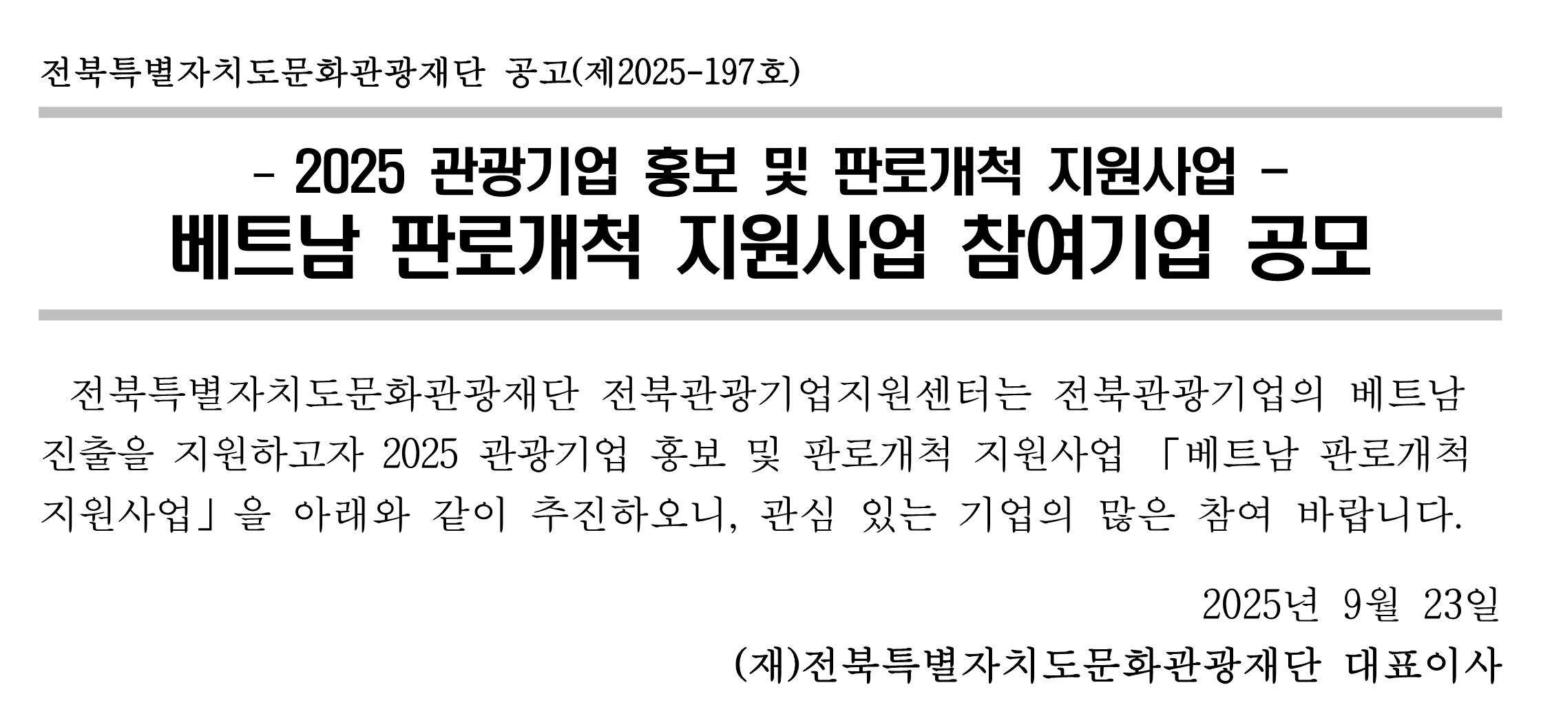 2025 관광기업 홍보 및 판로개척 지원사업 「베트남 판로개척 지원사업」참여기업 공모전 공고