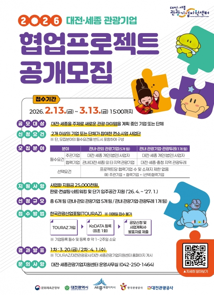 [대전세종관광기업지원센터] '2026 대전·세종 관광기업 협업프로젝트 공모 안내