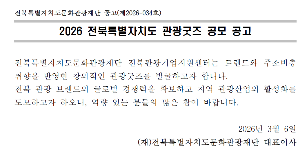 2026 전북특별자치도 관광굿즈 공모 공고