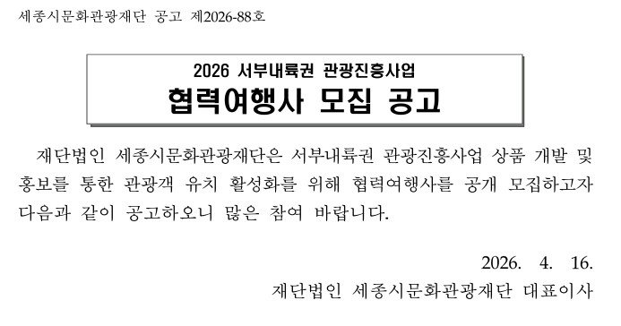 2026 서부내륙권 관광진흥사업 협력여행사 모집 공고