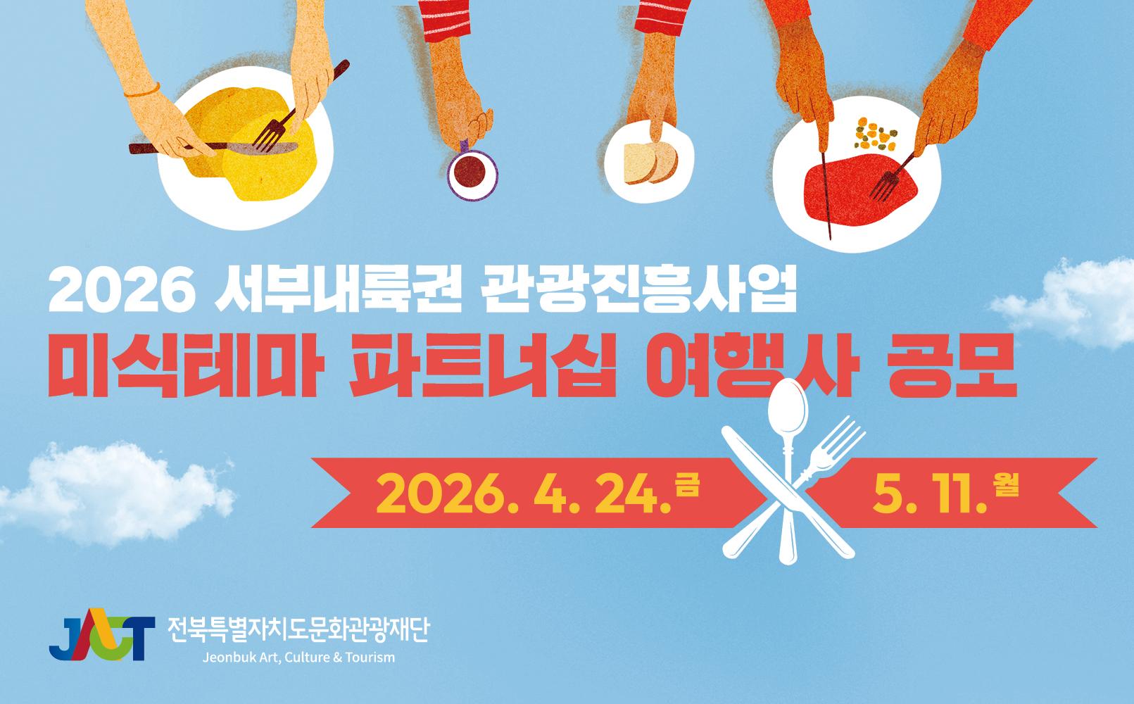 전북특별자치도문화관광재단(대표이사 이경윤, 이하 재단)은 ‘2026 서부내륙권 관광진흥사업 미식테마 파트너십 여행사’ 를 오는 5월 11일 오후 6시까지 공개 모집한다고 밝혔다.