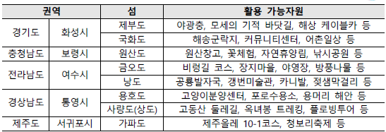 - 섬 관광 콘텐츠 발굴 및 활성화