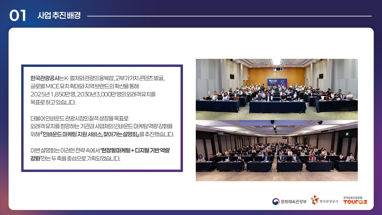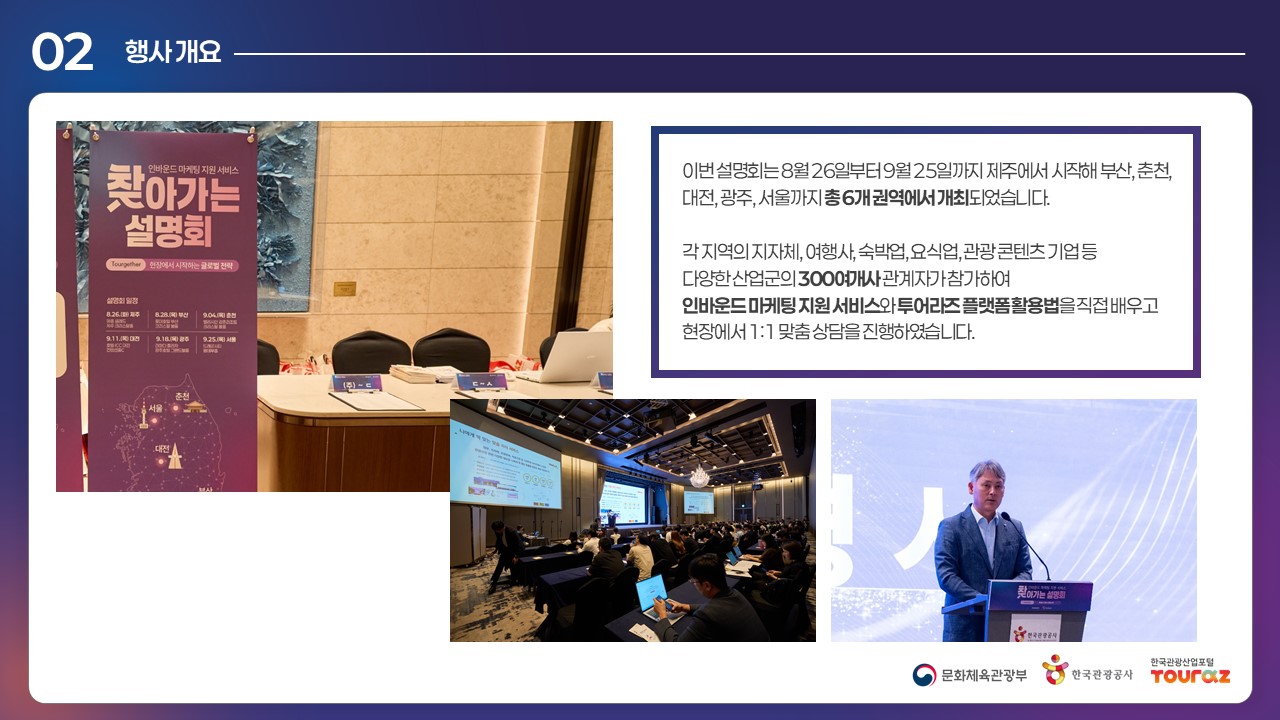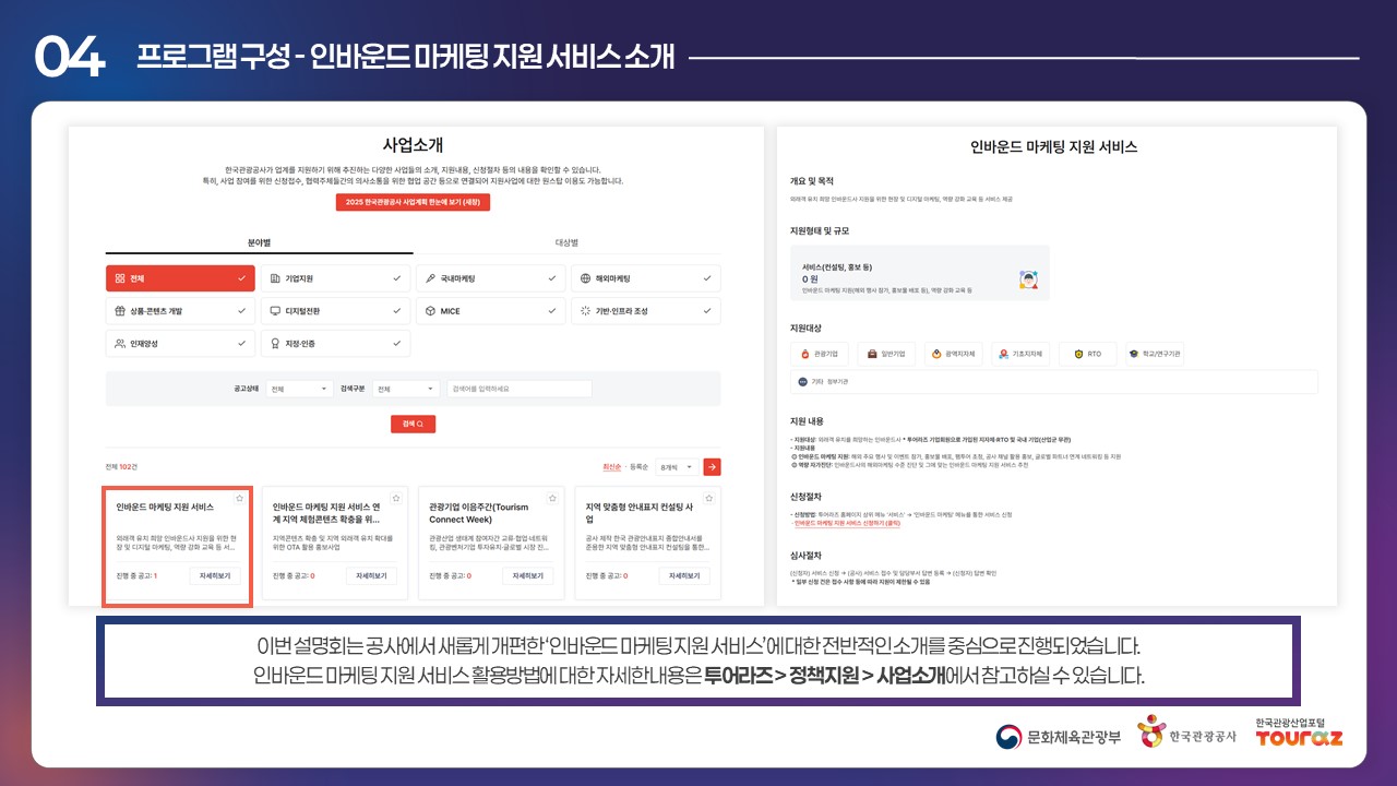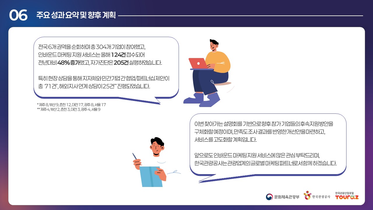공사에서 새롭게 개편하여 추진하고 있는 인바운드 마케팅 지원 서비스를 권역별로 찾아가 효과적으로 홍보하고,