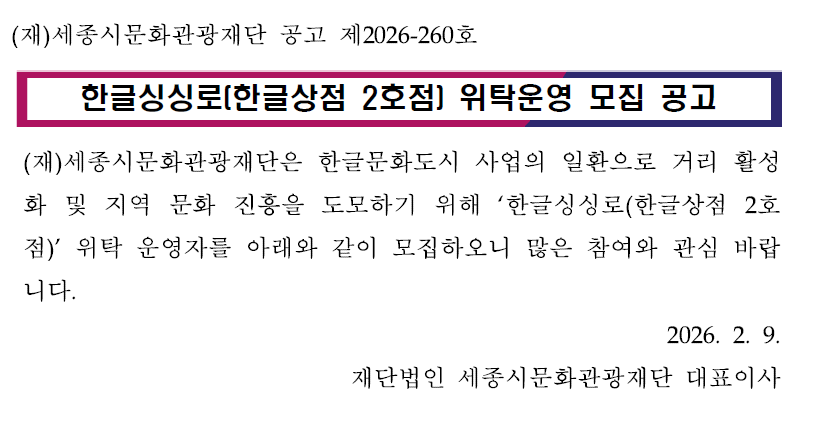 한글싱싱로(한글상점 2호점) 위탁운영 모집 공고