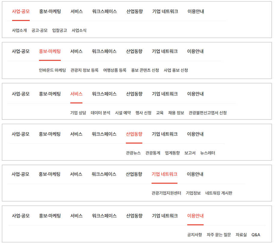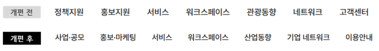 대 메뉴명을 더욱 직관적으로 변경하고 알맞은 서비스를 배치하였습니다.